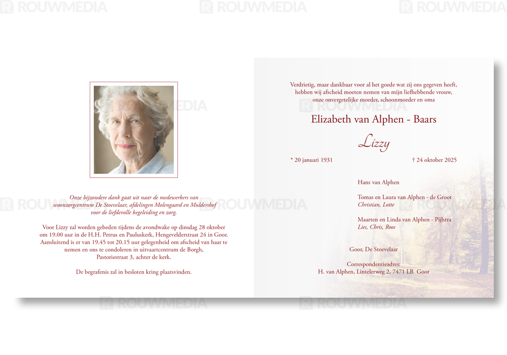 Rouwkaart herfstbos