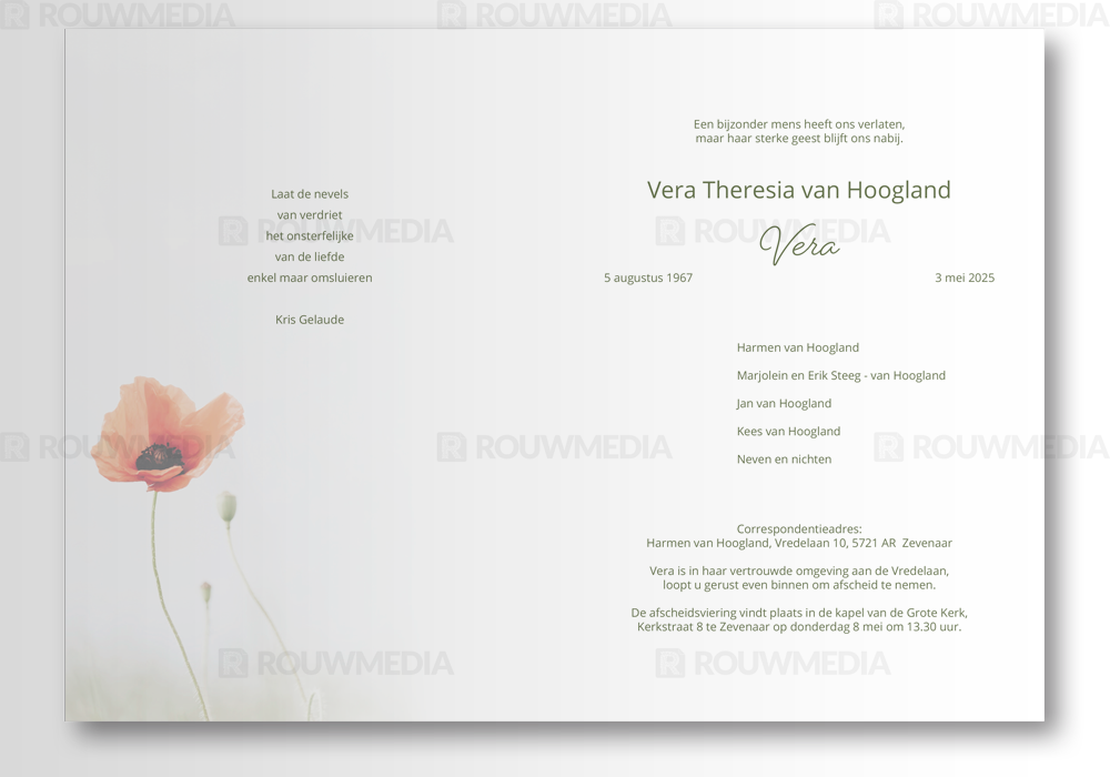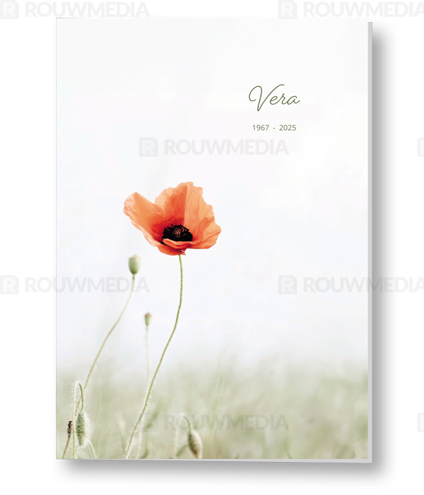 Deze staande rouwkaart toont een klaproos in de natuur