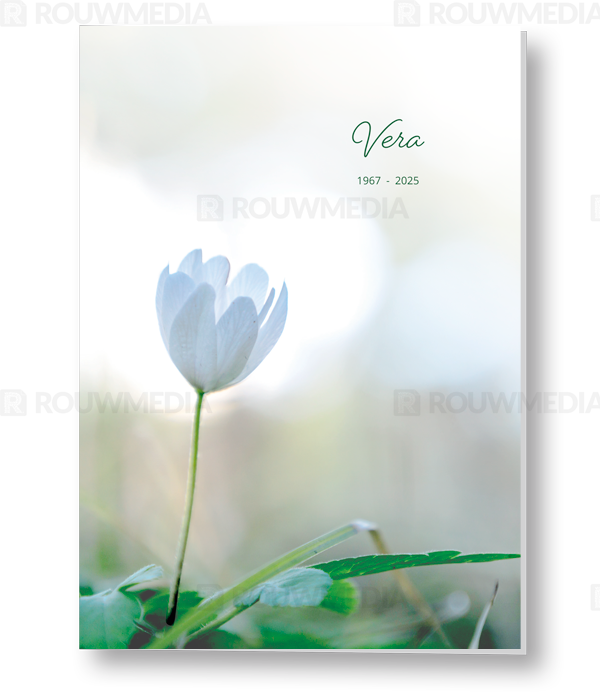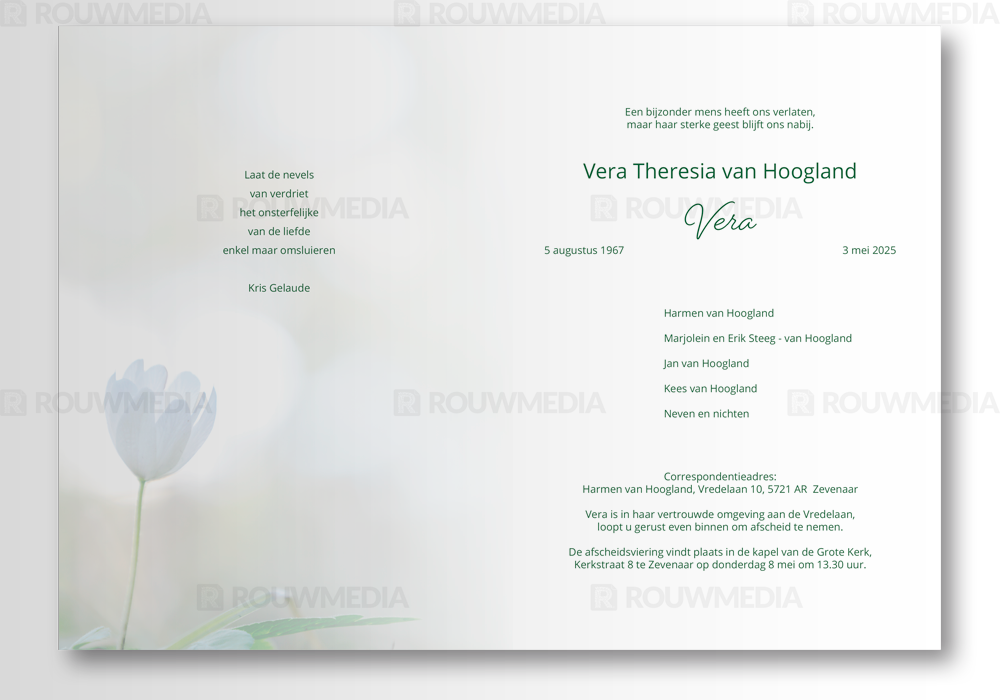 Deze staande rouwkaart toont een lente bloem in de natuur