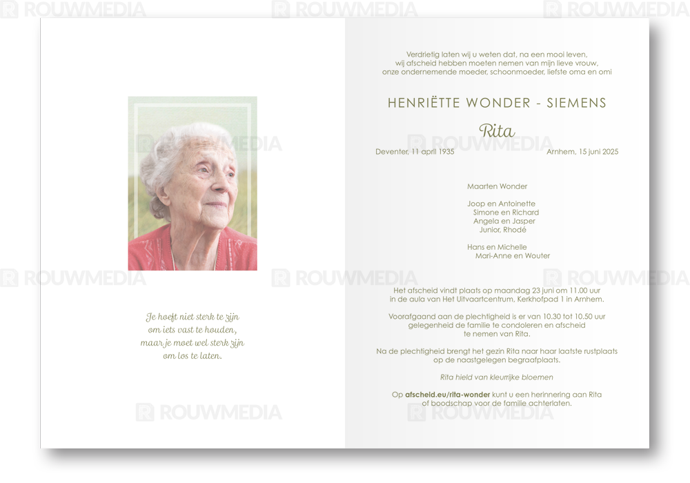 Rouwkaart met aangemeerd scheepstouw en portret | Rechthoekig