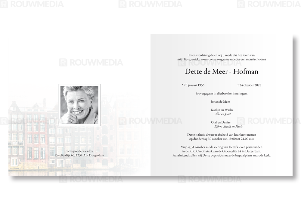 Rouwkaart met Amsterdam grachtenpanden | Vierkant