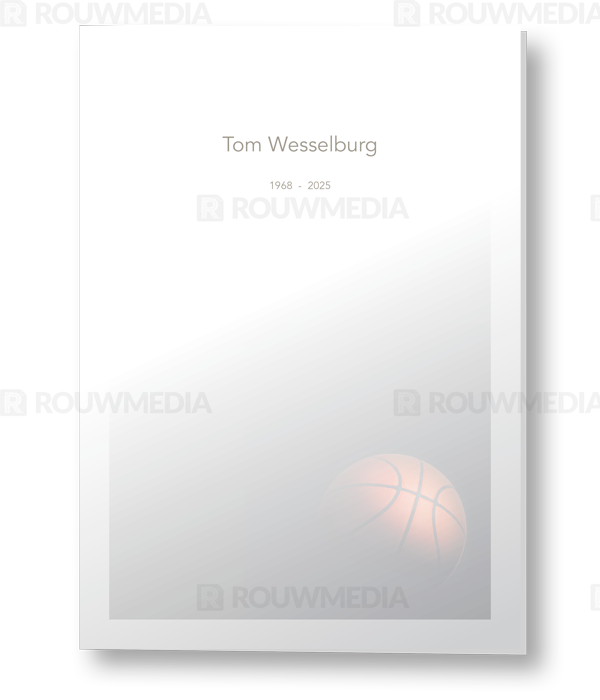 Rouwkaart met basketbal op donkere achtergrond