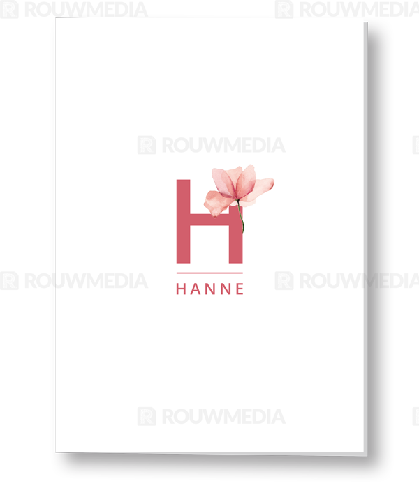 Op deze kaart wordt een aquarel bloem weergegeven bij de beginletter van de naam van de overledene.