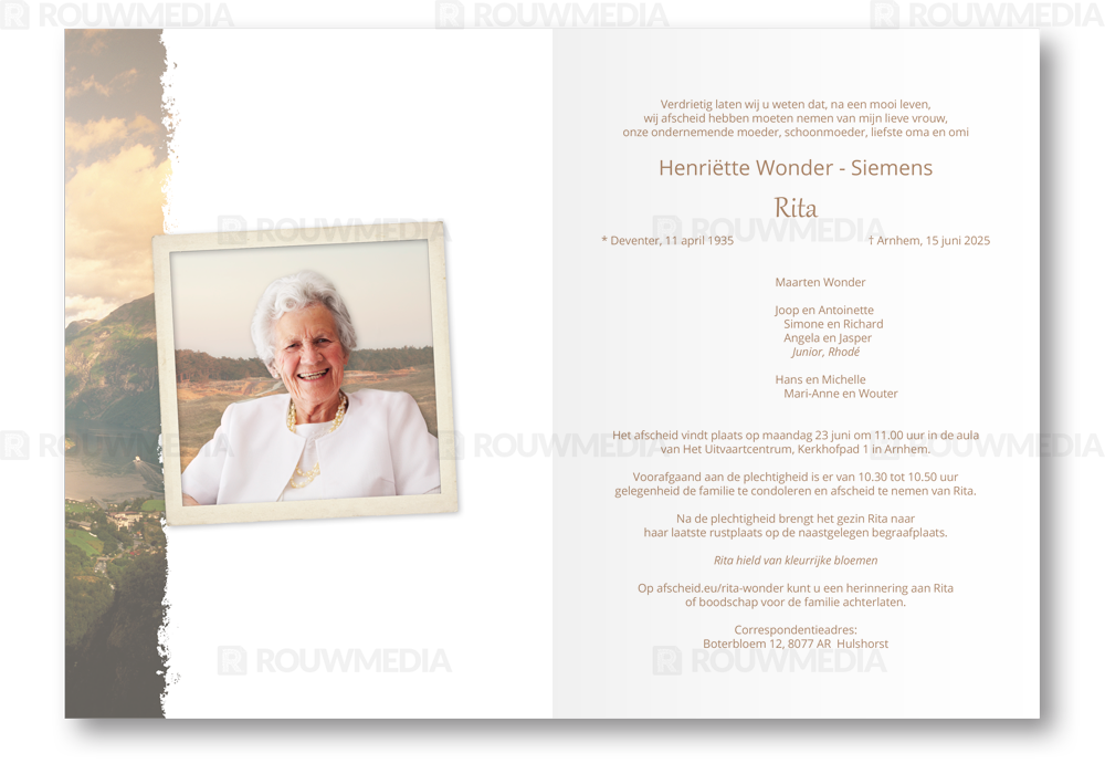 Rouwkaart met berglandschap