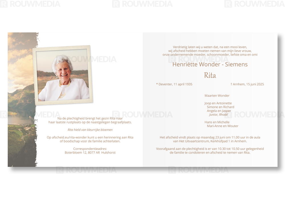 Rouwkaart met berglandschap