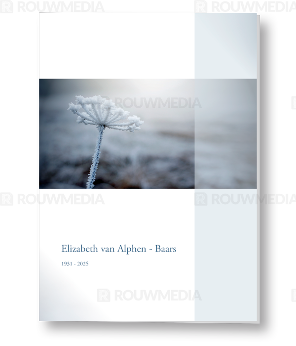 Deze staande kaart heeft een horizontale afbeelding van een bevroren winterbloem. Aan de rechterkant wordt een transparante balk weergegeven om de kaart wat meer kleur te geven en speelser te maken.