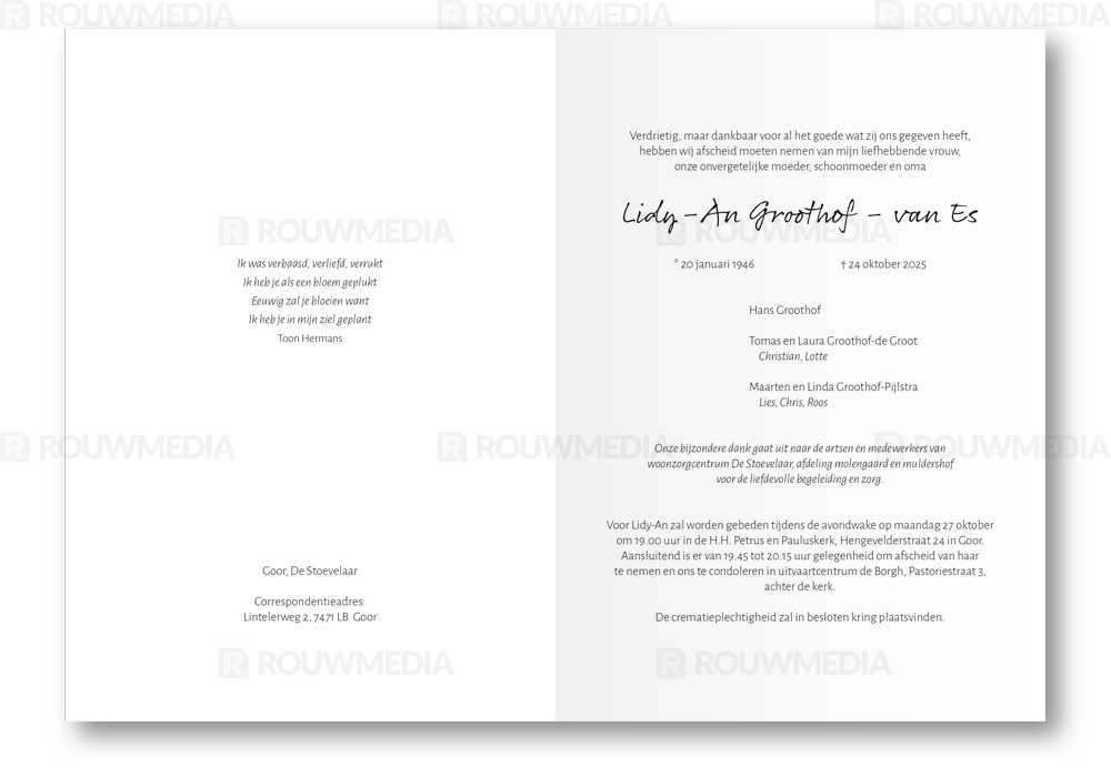 Voor deze staande kaart is het mogelijk om een eigen afbeelding/portret te kiezen. Deze afbeelding wordt in een stijlvolle setting bewerkt zodat deze een schilderachtige beleving krijgt. De afbeelding wordt beeldvullend weergegeven met de mogelijkheid om