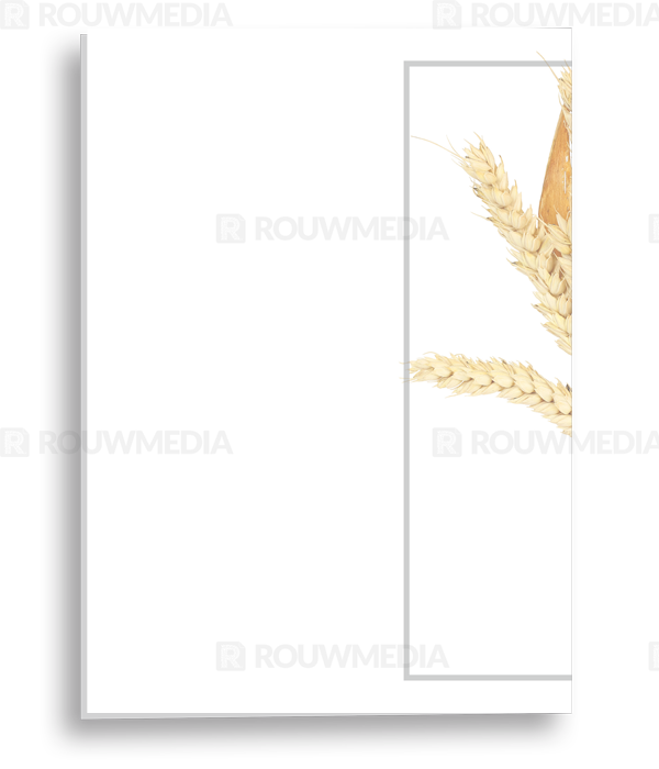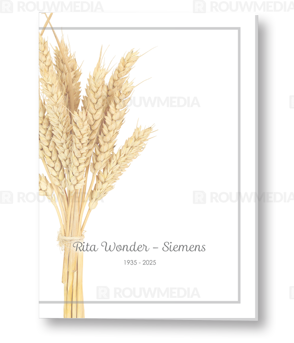 In de staande rouwkaart wordt een beeldvullende foto weergegeven van een bos koren.