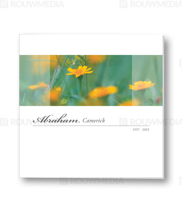 In deze vierkante rouwkaart wordt een horizontale afbeelding weergegeven van boterbloemen.