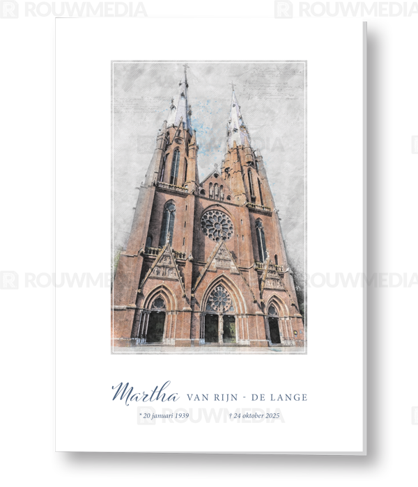 Rouwkaart met Brabantse Sint-Catharinakerk | Rechthoekig
