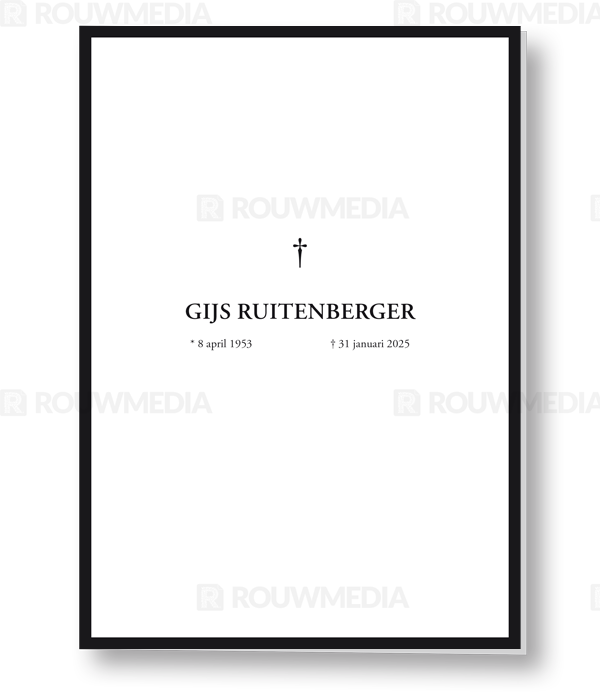 Staande Rouwkaart met dik zwart kader en kruis in het midden.