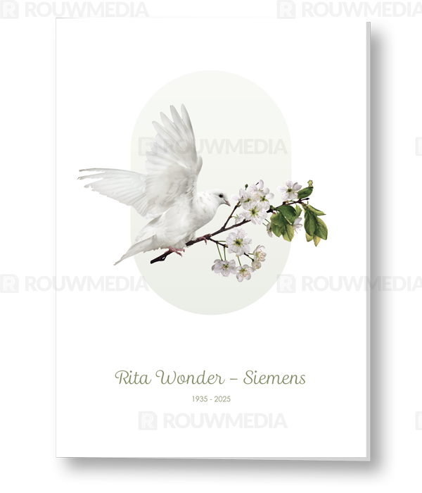 Rouwkaart met duif op een bloesemtak