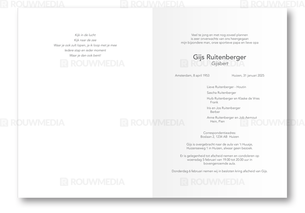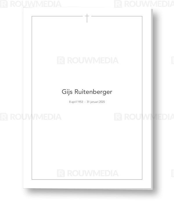 Staande Rouwkaart met grijs kader en kruis boven gecentreerd. Naam kan midden in de Rouwkaart geplaatst worden