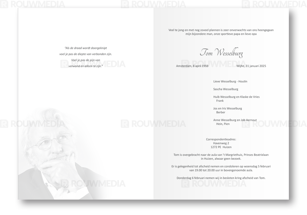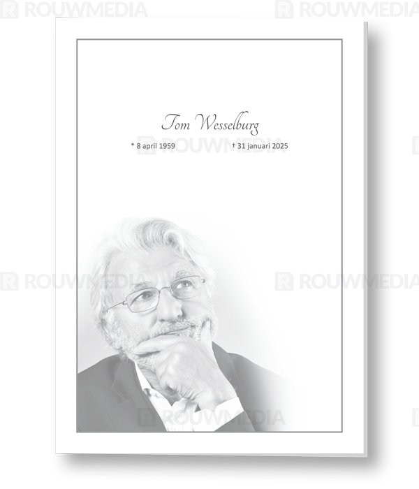 Staande Rouwkaart met grijs kader. Er is ruimte voor een portret of andere eigen afbeelding.
