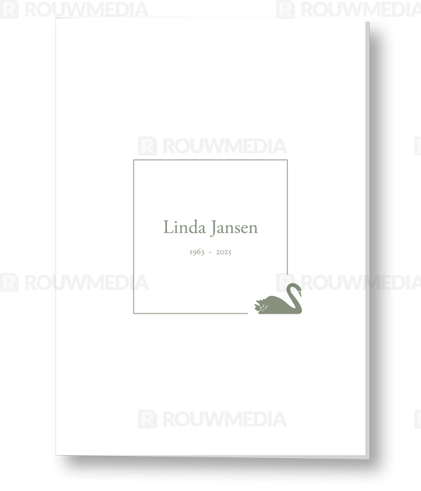 Rouwkaart met dun kader en zwaan | Rechthoekig