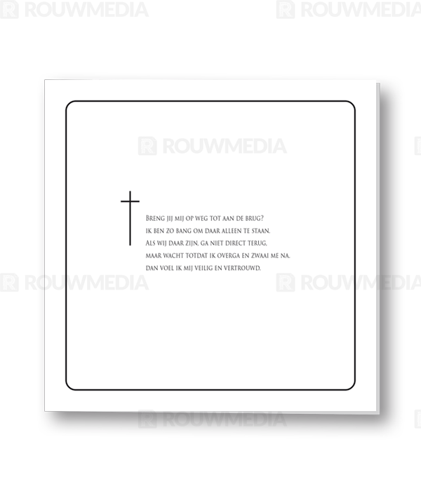 Rouwkaart met zwart rond kader en kruis in het midden. Er is ruimte voor een gedicht, bijbeltekst of citaat.