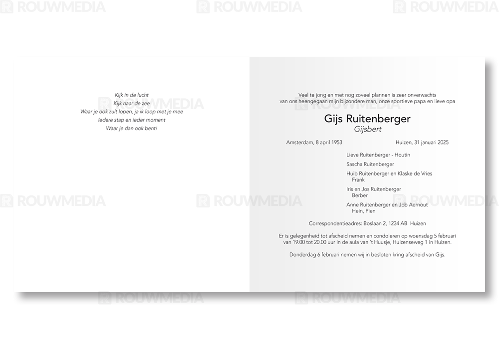Rouwkaart met zwart kader en kruis boven gecentreerd. Naam kan midden in de Rouwkaart geplaatst worden.