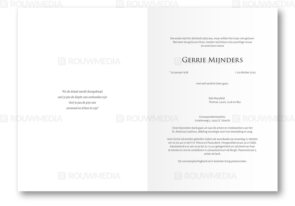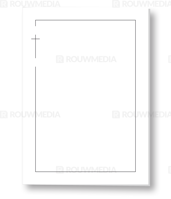 Staande Rouwkaart met zwart kader en kruis links bovenin.