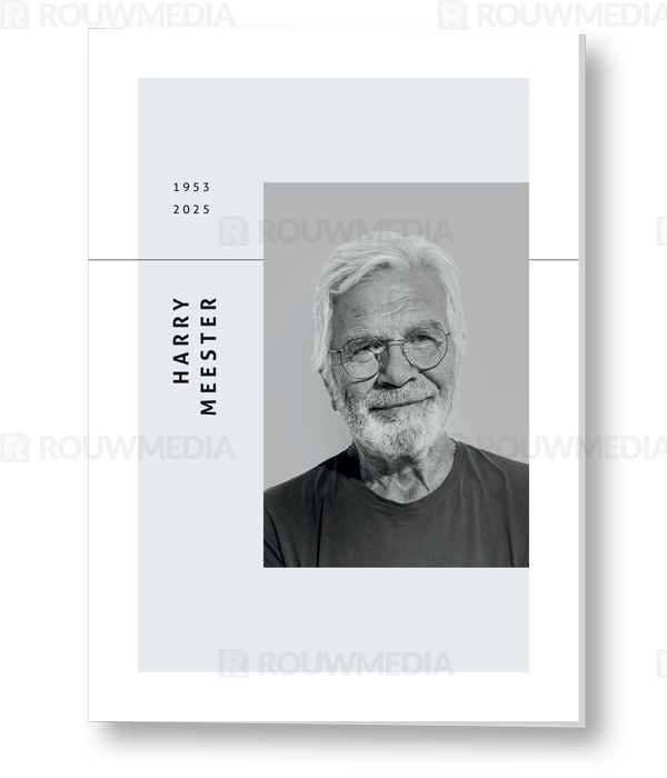 Op deze moderne rouwkaart kan een eigen foto worden weergegeven.