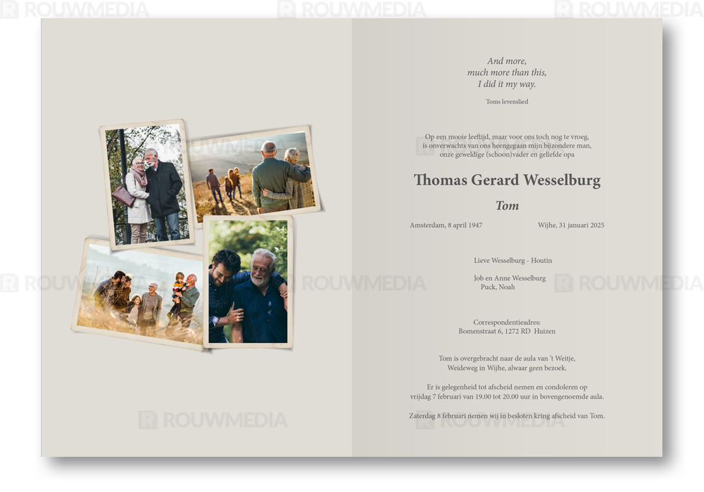 Op deze rouwkaart kunt u een eigen foto plaatsen in een nostalgisch fotoframe. Aan de binnenzijde kunt u meerdere foto