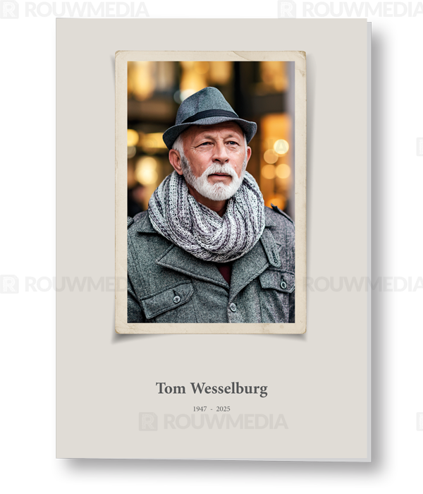 Rouwkaart met eigen foto in nostalgisch fotoframe
