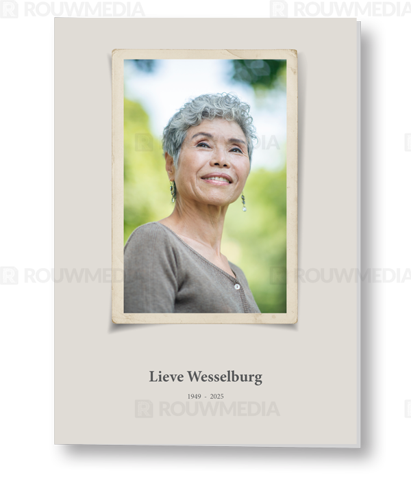Rouwkaart met eigen foto in nostalgisch fotoframe