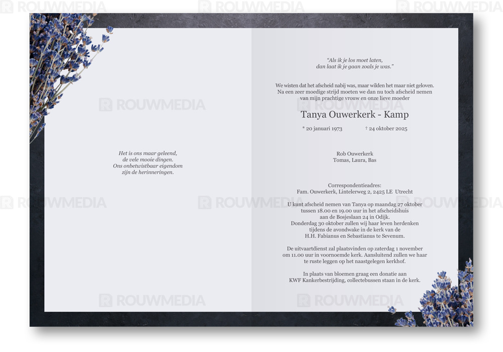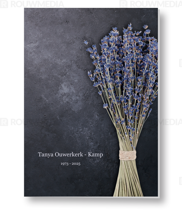 Rouwkaart met gedroogde lavendel op een stenen achtergrond