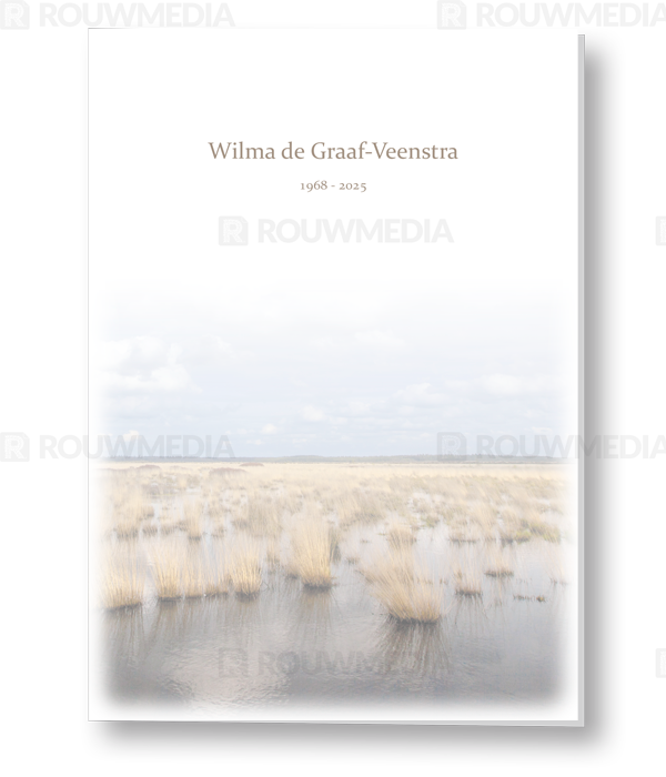 In deze staande rouwkaart wordt een beeldvullende afbeelding weergegeven van een heideveld. Boven de afbeelding kunt u de naam en datums weergeven.