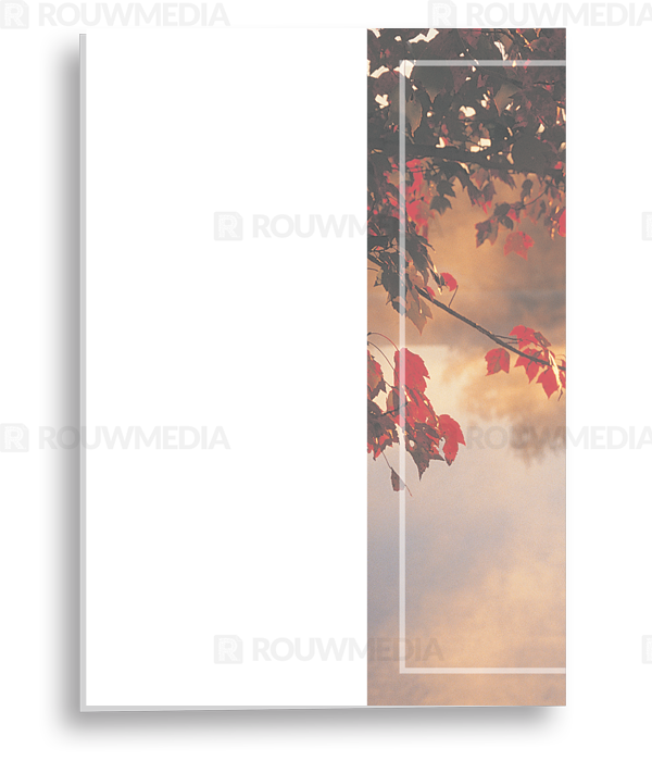 Rouwkaart met herfstbladeren in zonlicht boven water | Rechthoekig