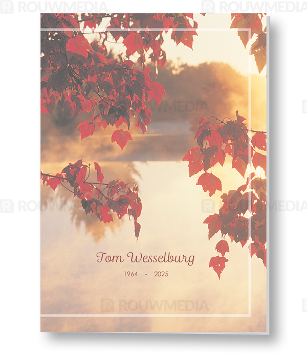 Rouwkaart met herfstbladeren in zonlicht boven water