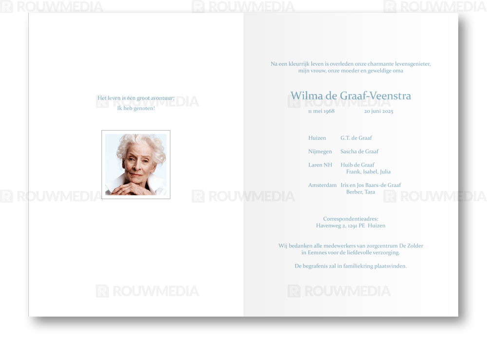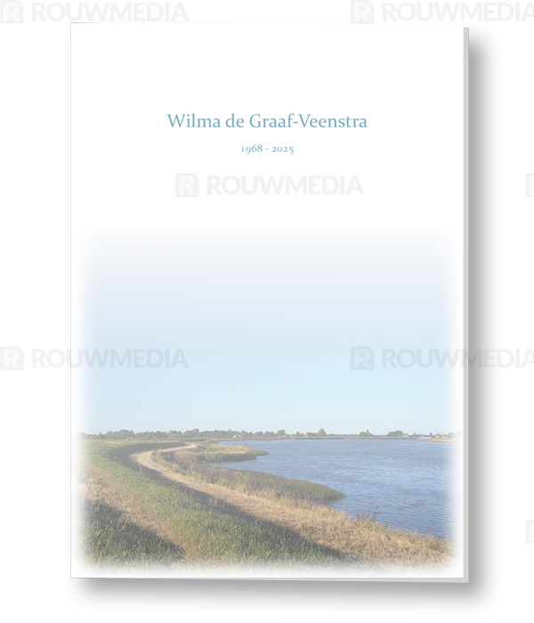 In deze staande rouwkaart wordt een beeldvullende afbeelding weergegeven van de Hollandse IJssel. Boven de afbeelding kunt u de naam en datums weergeven.
