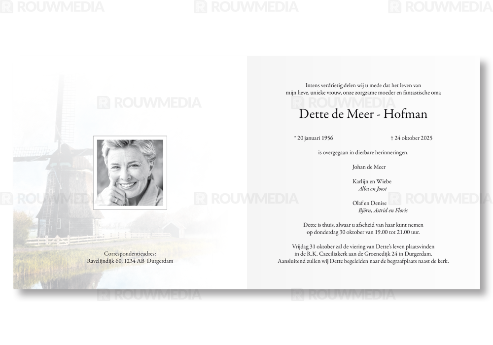 Rouwkaart met Hollandse molen