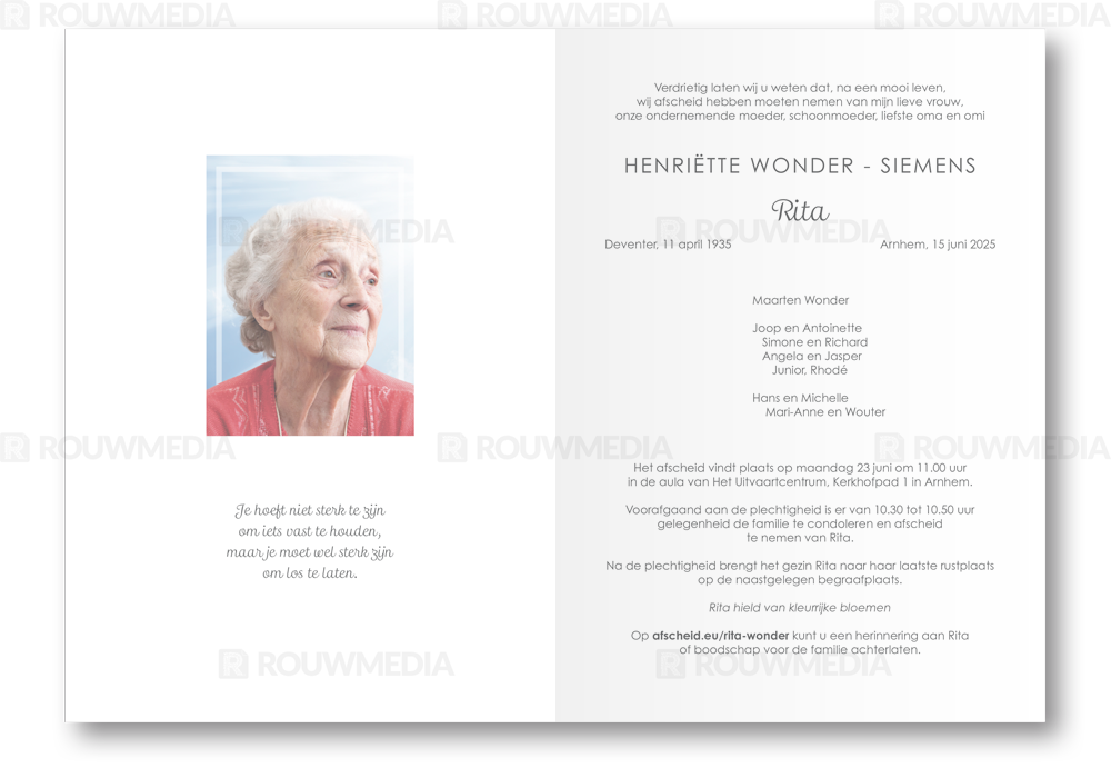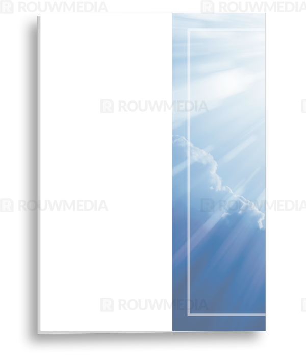 In de staande rouwkaart wordt een beeldvullende foto weergegeven van jezus die boven de wolken uitsteekt.