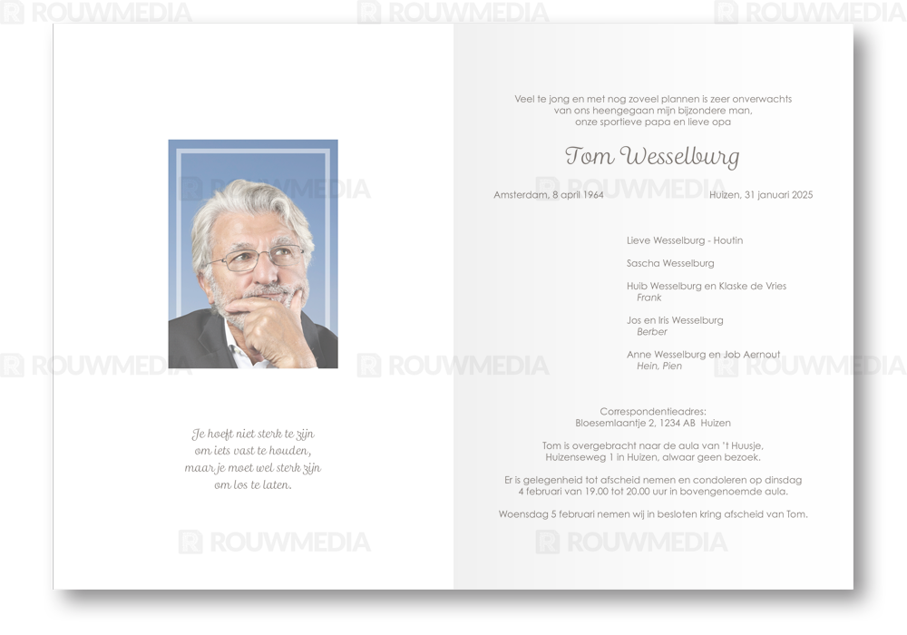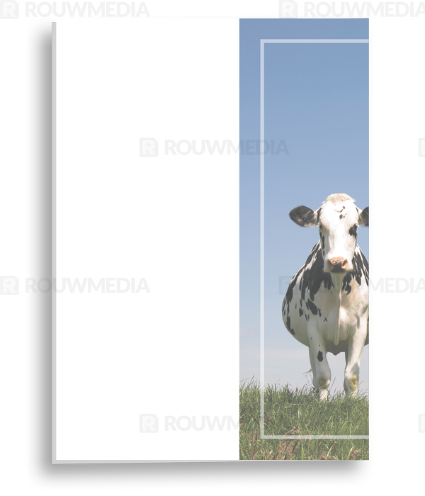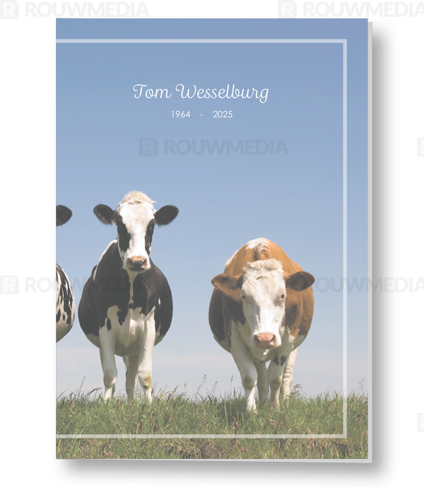 In de staande rouwkaart wordt een beeldvullende foto weergegeven van drie koeien in het weiland.