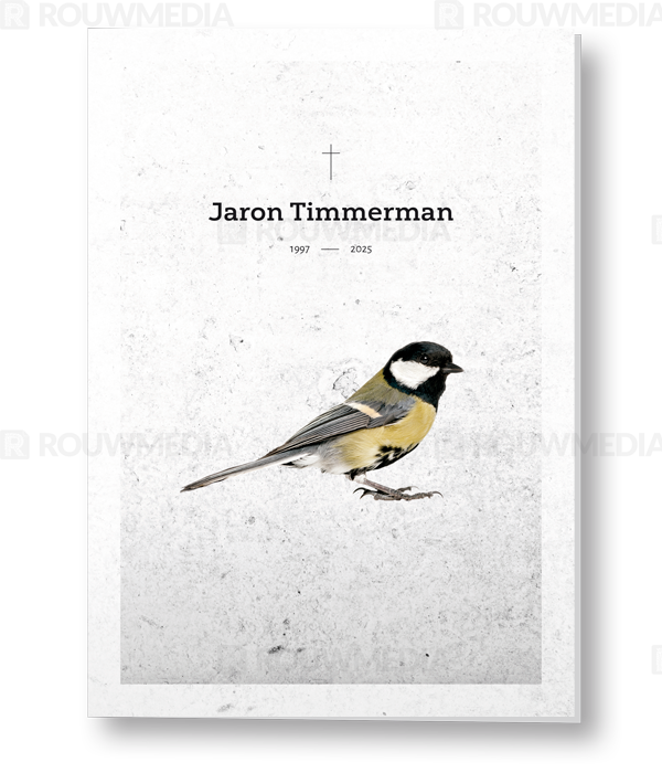 Bij deze kaart staat de natuur centraal. Gecentreerd staat een silhouette van een koolmees. Aan de binnenzijde is ruimte voor een portret.