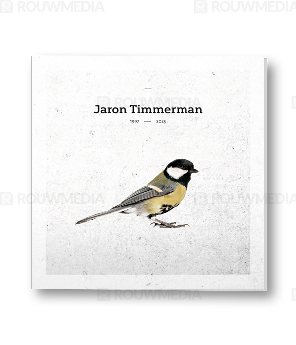 Rouwkaart met koolmees in silhouette met abstracte achtergrond