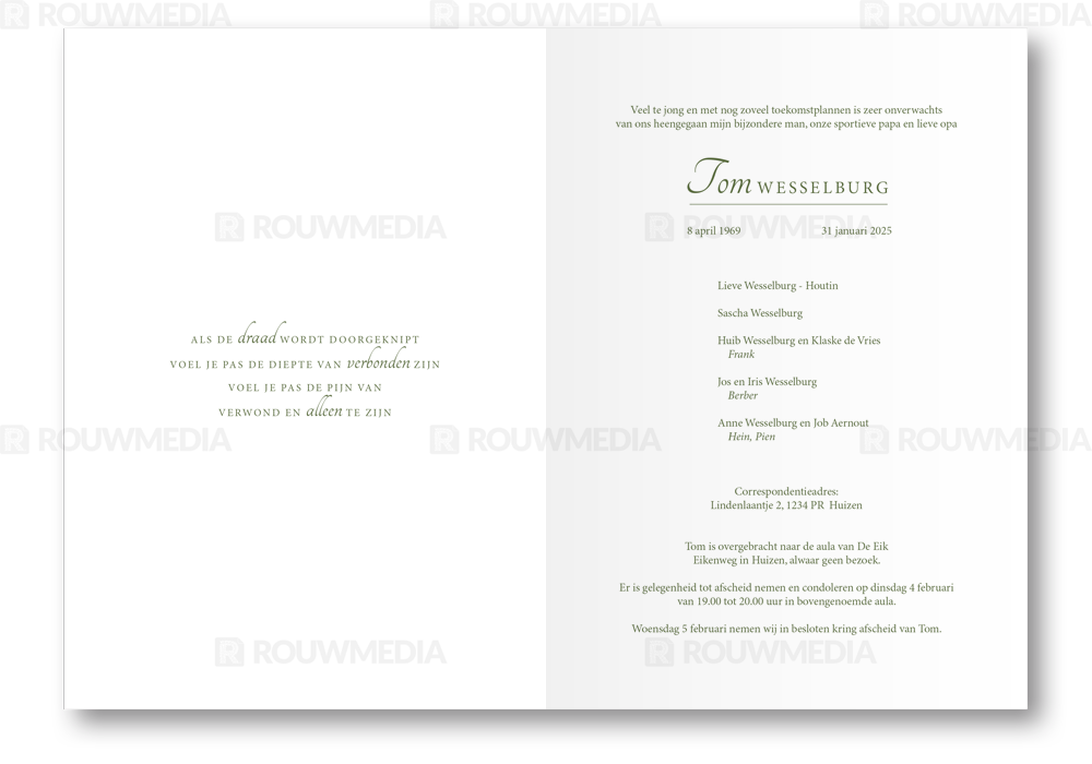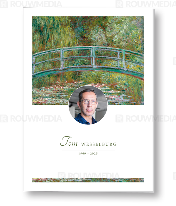 Voor deze staande rouwkaart is een van de bekendste kunstwerken van Monet op de achtergrond weergegeven. De groene kleur van