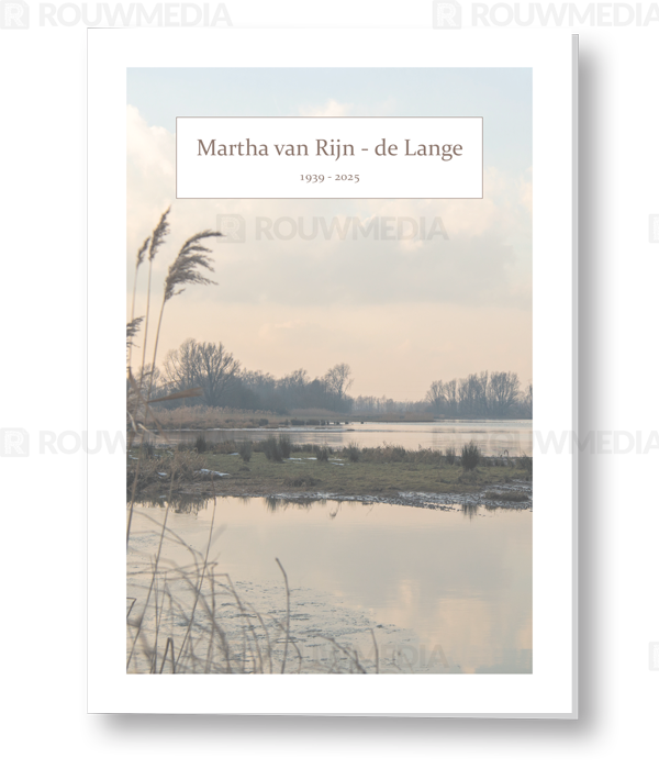 In de staande rouwkaart wordt een beeldvullende foto weergegeven van een polderlandschap.