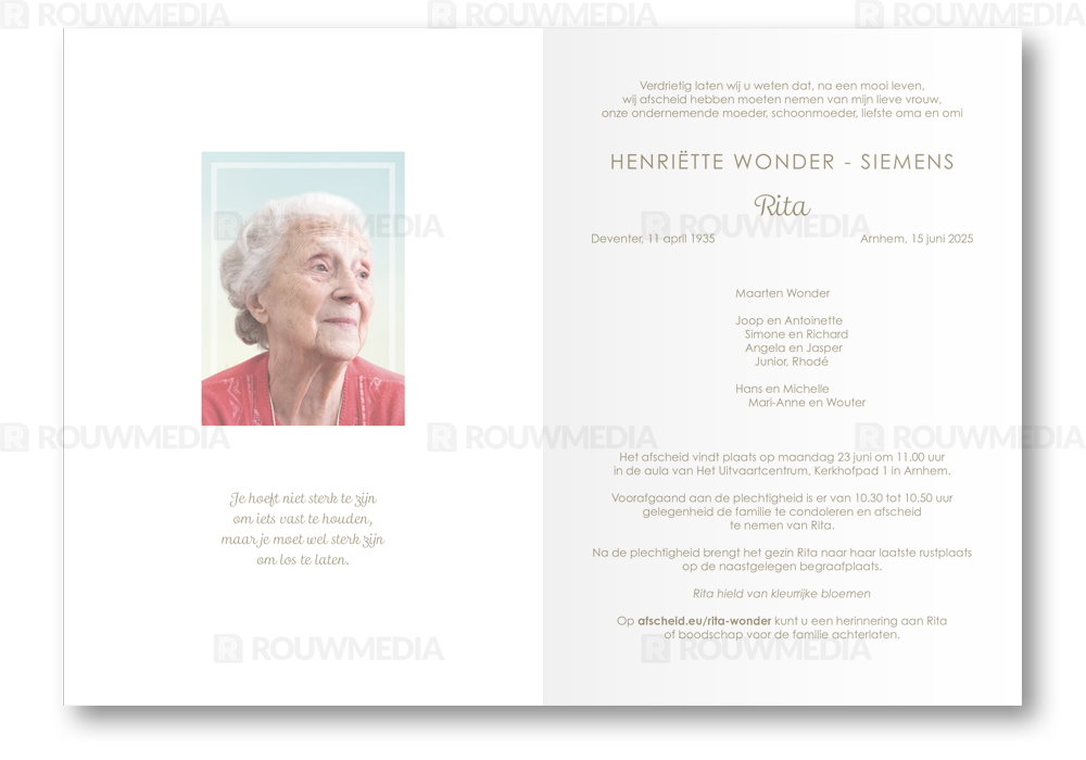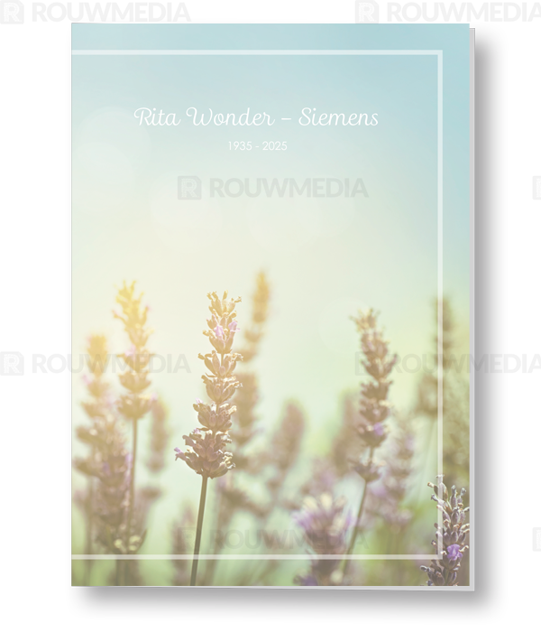 In de staande rouwkaart wordt een beeldvullende foto weergegeven van paarse lavendel takken.