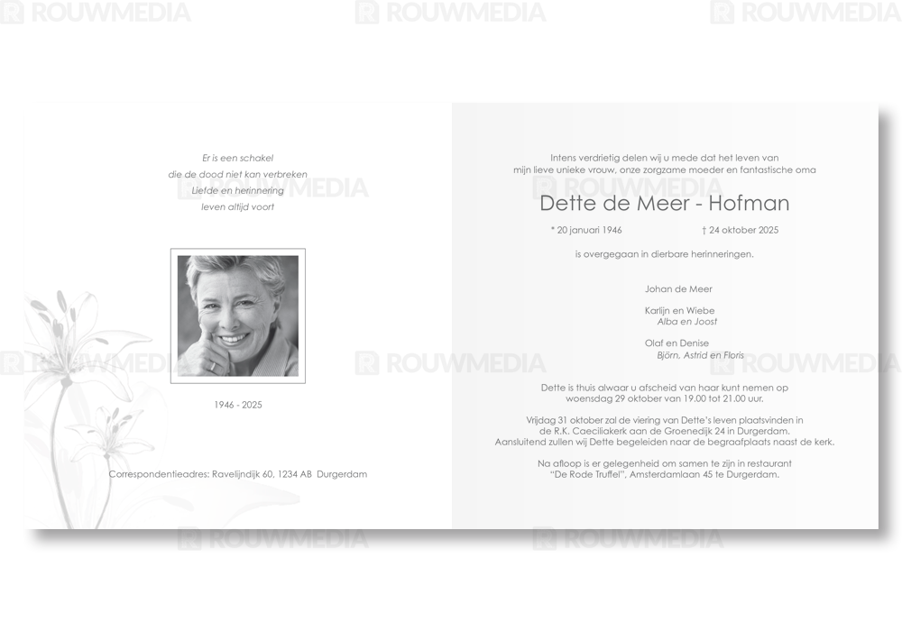 Rouwkaart met lelie