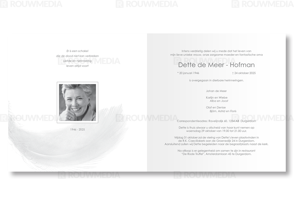 Rouwkaart met liggende veer