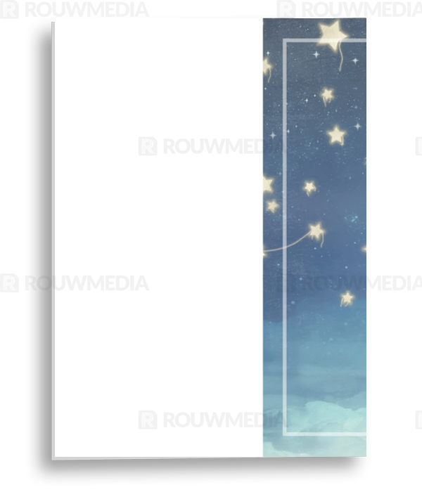 Rouwkaart voor kind met maan en sterren lichtblauw aan de binnenkant kan een foto worden toegevoegd.
