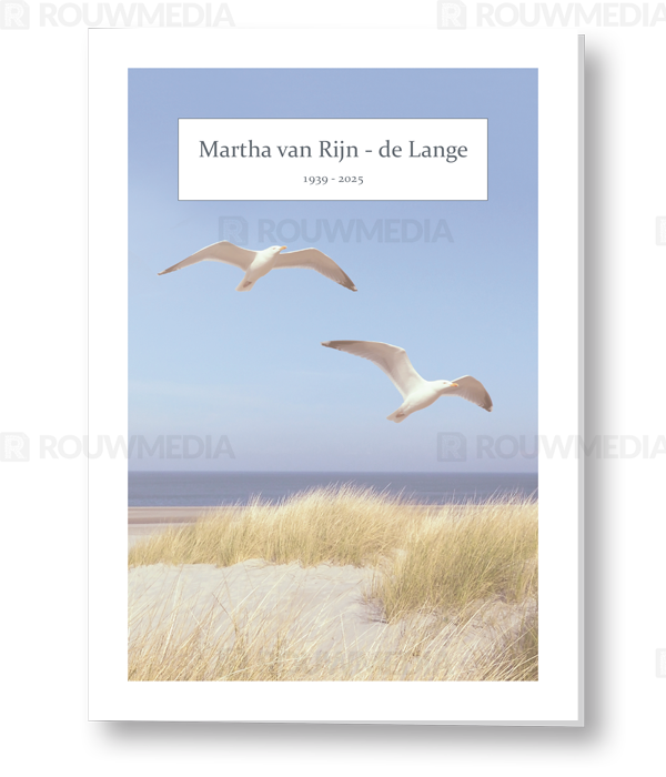 Rouwkaart met meeuwen op het strand