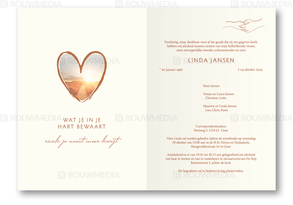 Rouwkaart met minimalistisch design handen