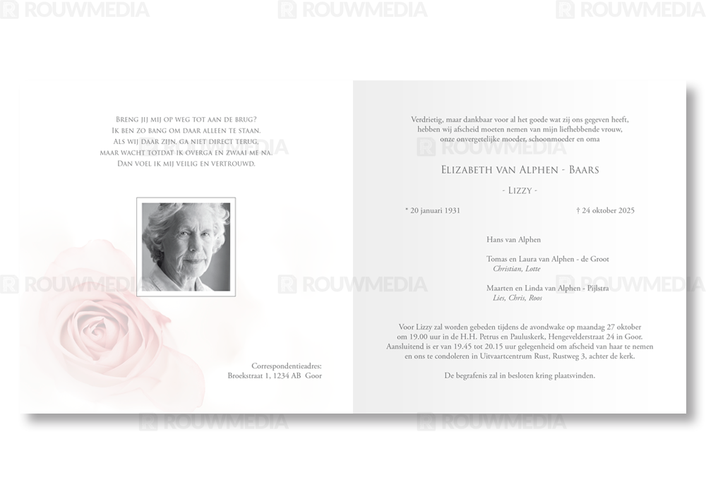 Rouwkaart met open roos