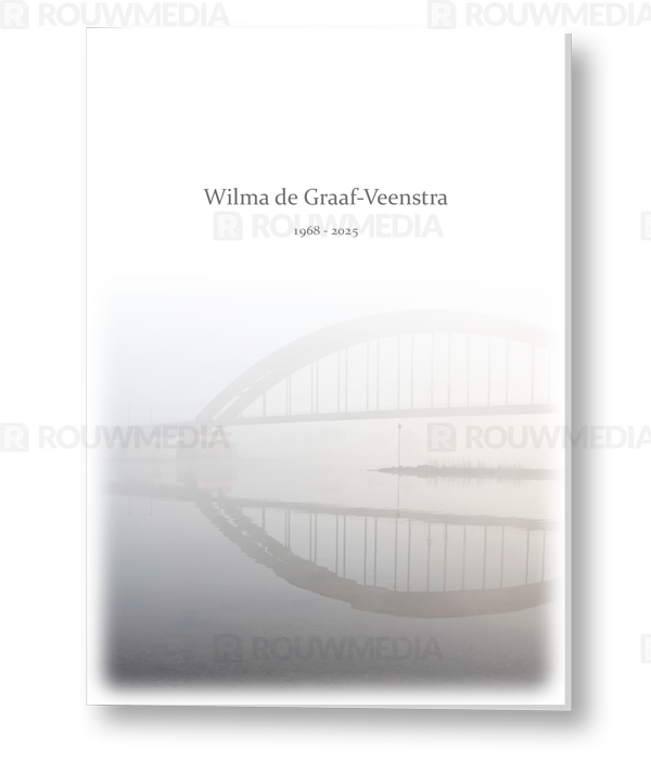 In deze staande rouwkaart wordt een beeldvullende afbeelding weergegeven van de Oude Lekbrug bij Vianen. Boven de afbeelding kunt u de naam en data weergeven.