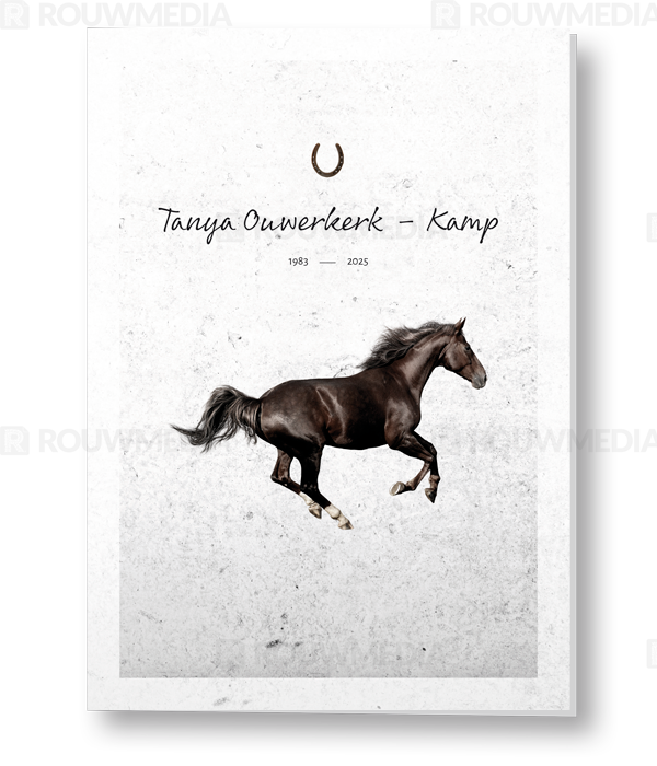 Rouwkaart met paard in silhouette met abstracte achtergrond