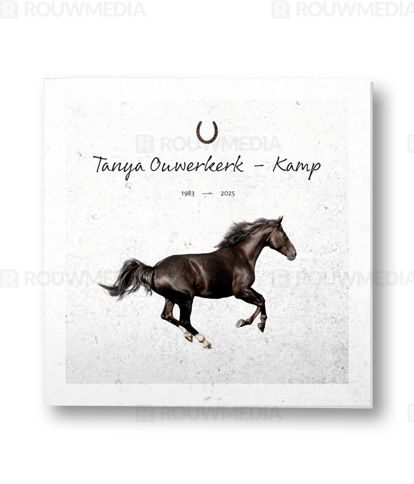 Rouwkaart met paard in silhouette met abstracte achtergrond