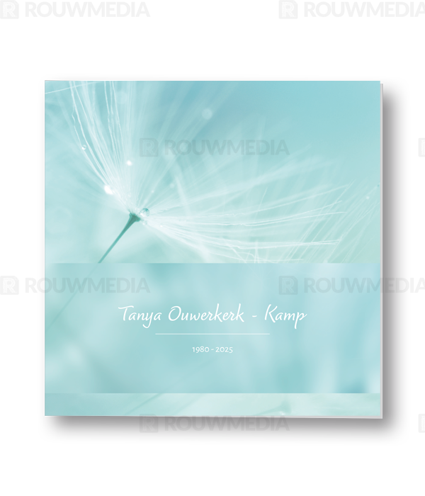 In deze staande rouwkaart wordt een beeldvullende afbeelding weergegeven die geïnspireerd is op de natuur. Over deze afbeelding is een wazige balk geplaatst zodat er ruimte ontstaat om een naam met datum weer te geven.