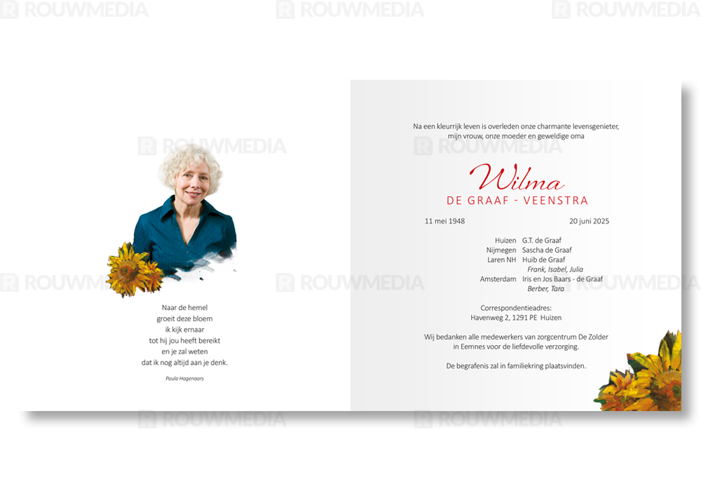 Rouwkaart met persoonlijk schilderij